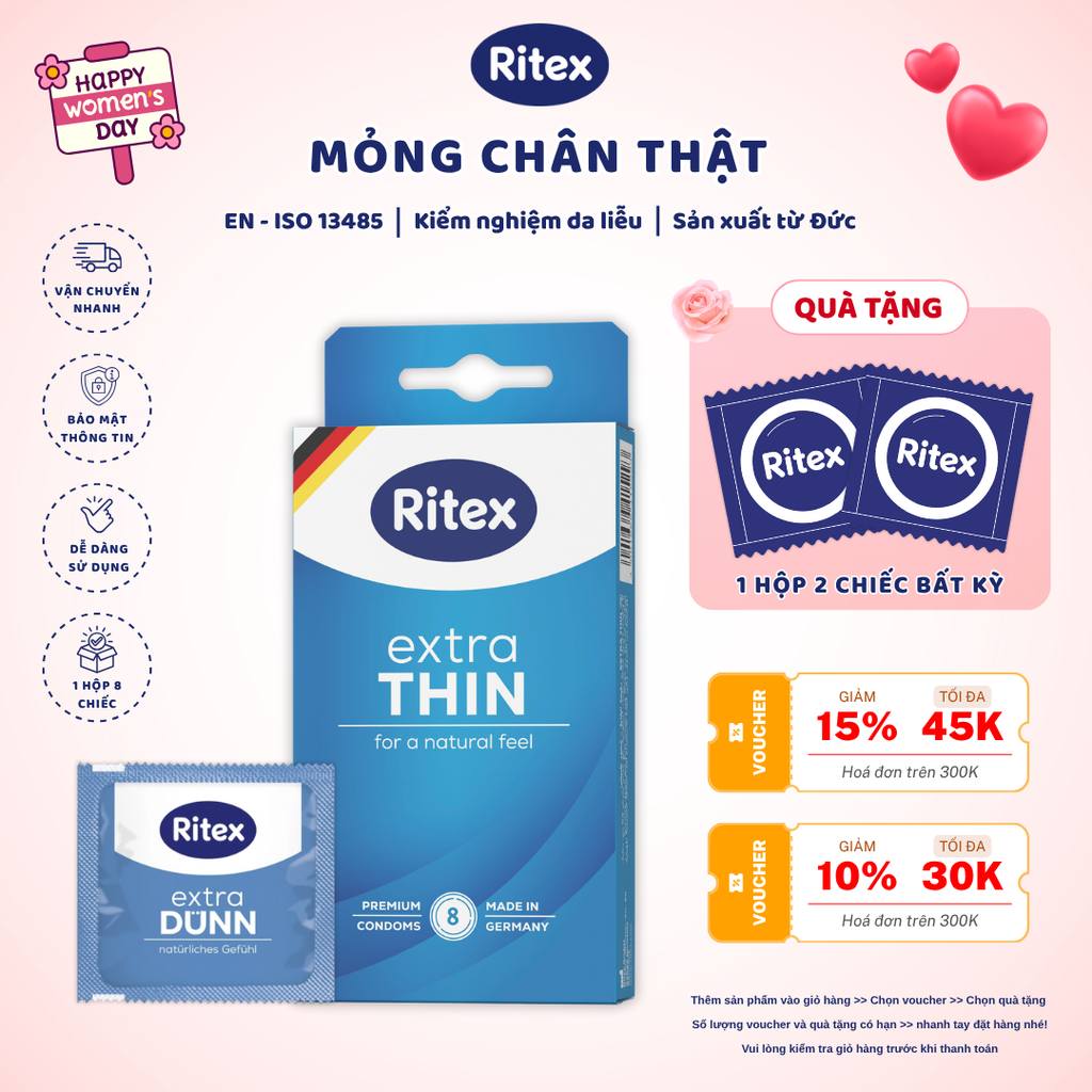 Bao cao su RITEX EXTRA DÜNN có độ dày thành mỏng nhất trong tất cả các loại bao cao su Ritex, là kết quả của nhiều thập kỷ kinh nghiệm sản xuất và phát triển. Chất lượng hàng đầu cho cảm giác thật tự nhiên.