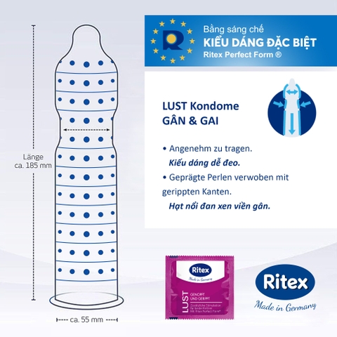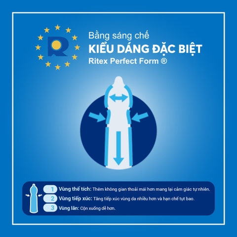 Ritex đã dày công nghiên cứu và sáng chế ra KIỂU DÁNG ĐẶC BIỆT (Ritex Perfect form ®) dựa trên đặc điểm cấu tạo sinh lý tự nhiên của con người, bằng sáng chế đã được Liên minh Châu Âu cấp vào 30/03/2006. Với những đặc tính đột phá và ưu việt: